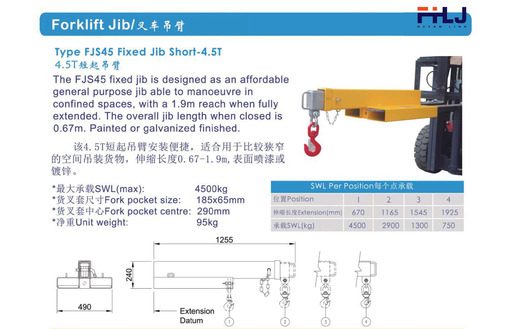 1.9-Metre Fully Extended 4500kg Short Fixed Jib New Iron Roller Bearing for Confined Spaces Material Handling Equipment Parts