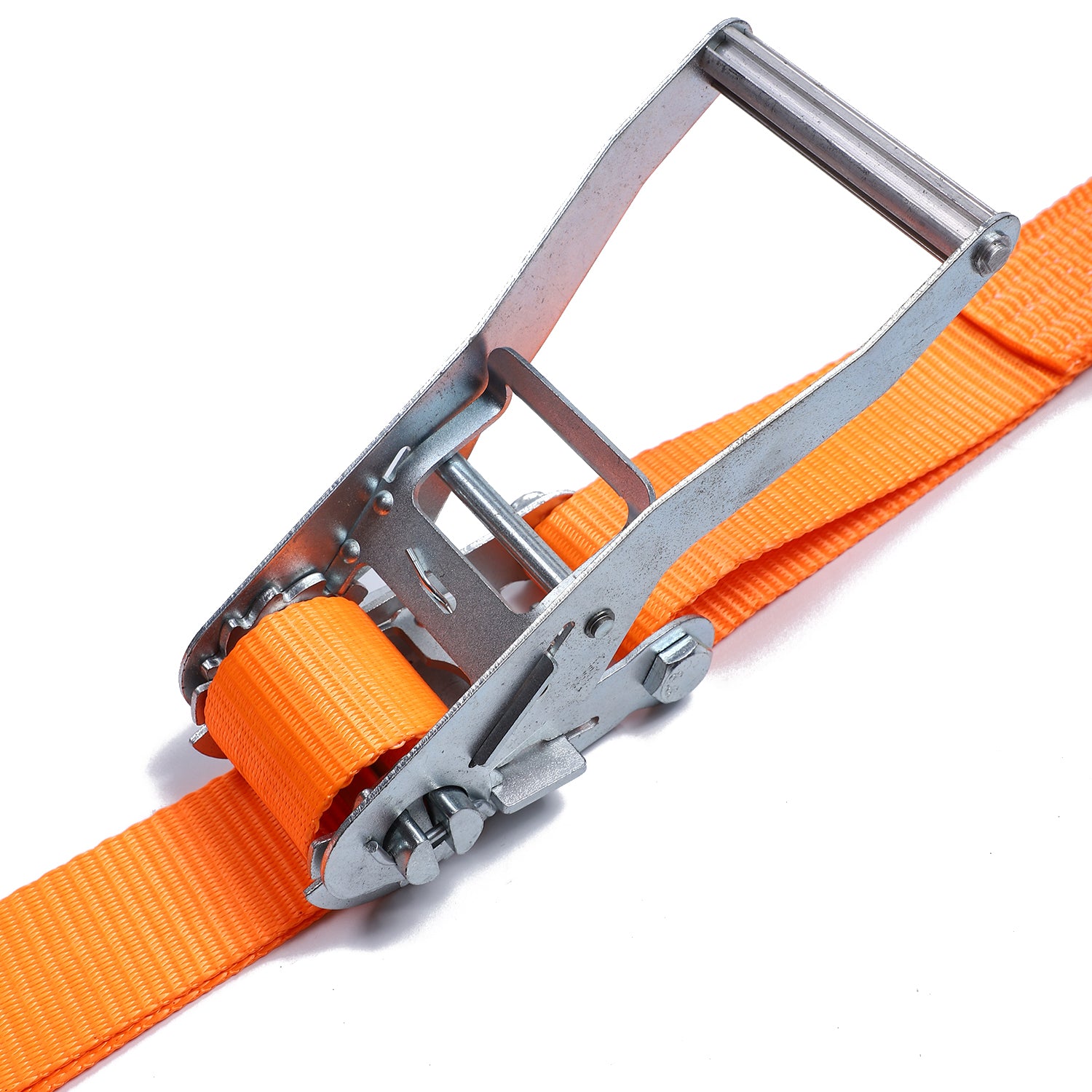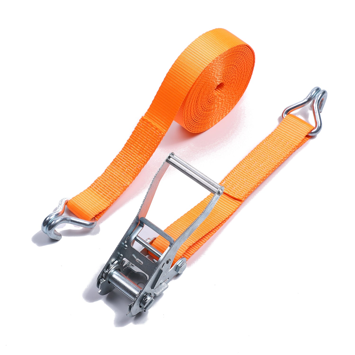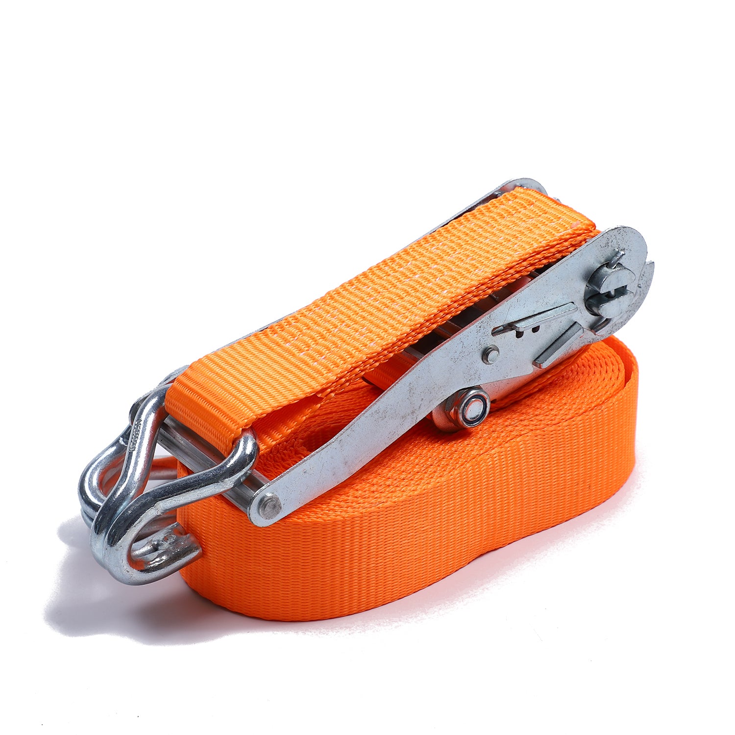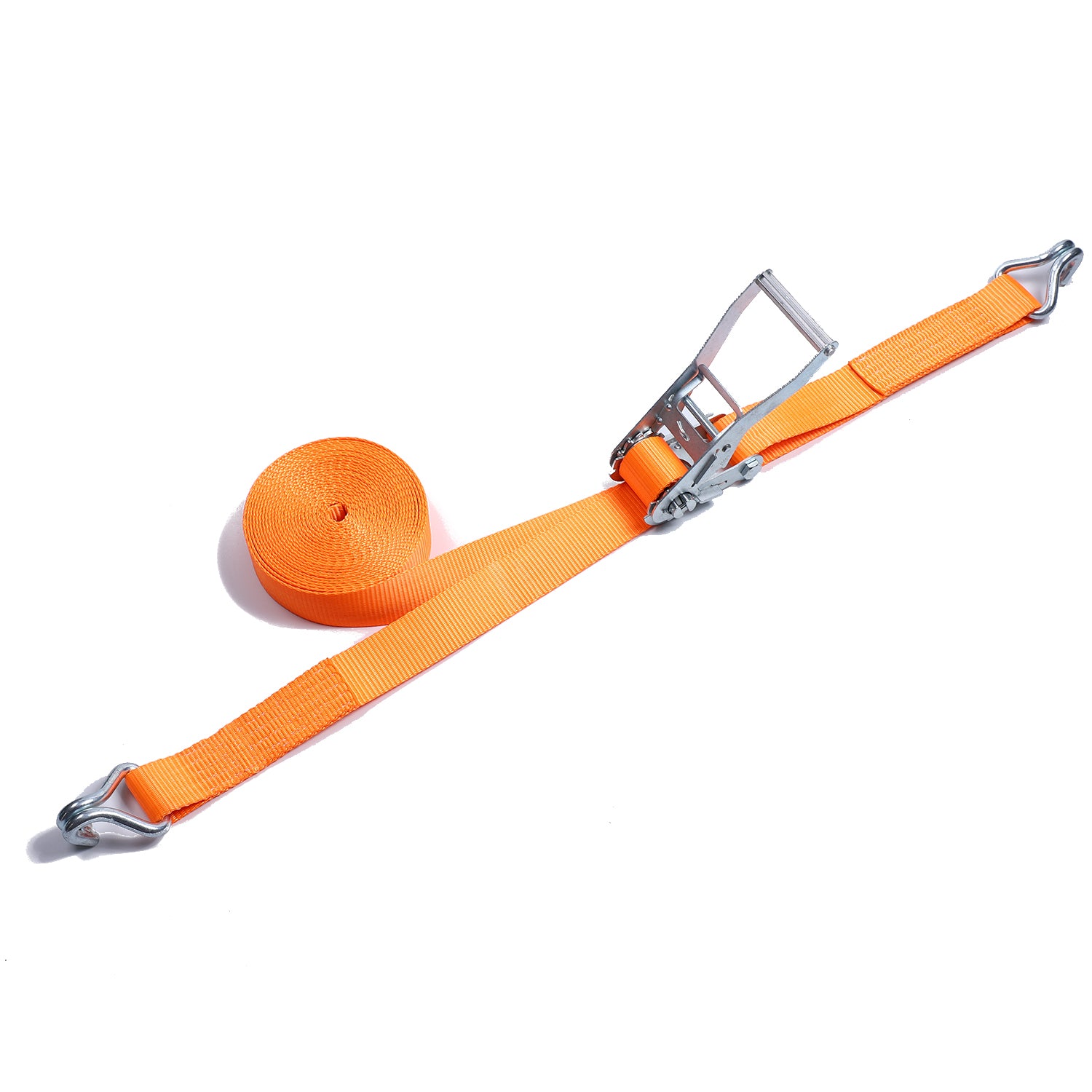2 Inch Polyester Orange Aluminum Long Hand Ratchet Strap with Double J Hooks