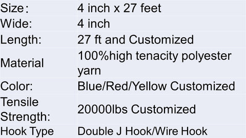 4 Inch Heavy Duty Winch Straps 27 feet Blue/Red/Yellow With Double J Hook/Wire Hook