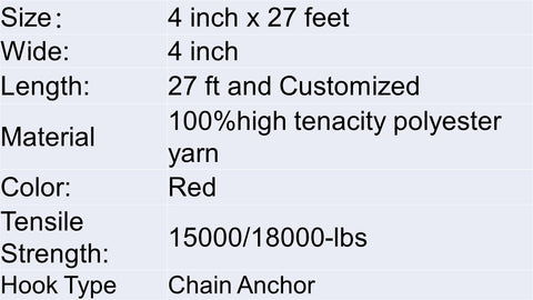 Blue 4 Inch x 27 Feet Winch Strap With Chain Grab Hook 18000-Lbs