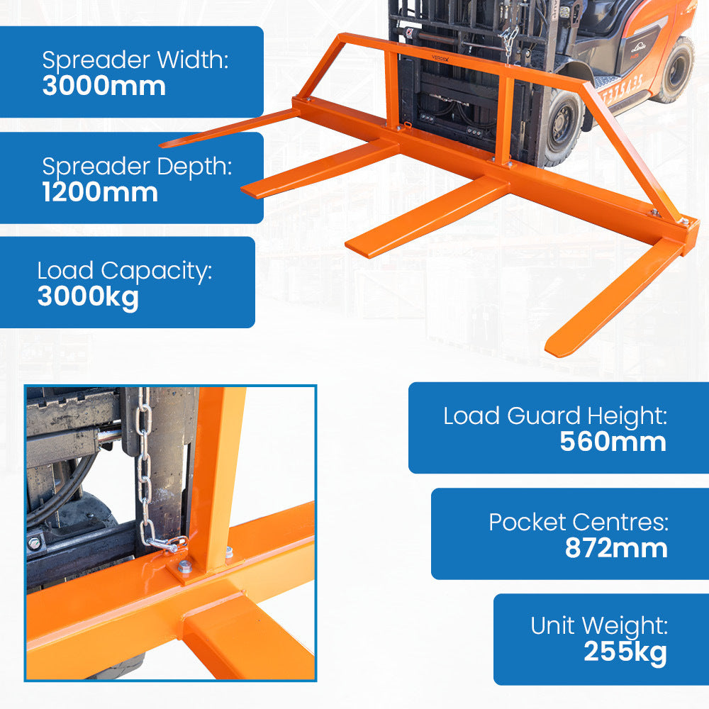 FS3 Versatile Fork Spreader Forklift Attachments for Plasterboard Roof Sheeting Timber and More