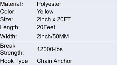 Yellow 12000-lbs 2 inch Retractable Cargo Ratchet strap with Chain Anchor