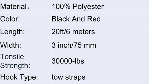 Polyester Black and Red 3 Inch/75 mm Rope Recovery Tow Strap For Car/Truck/Trailer 30000-Lbs