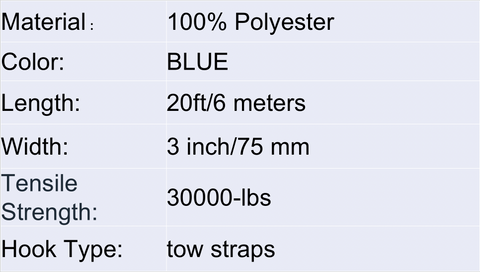Polyester Blue Resistance Flat Eye-Eye Ropes Cargo Tow Straps 3 Inch 20ft