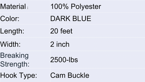 Polyester Dark Blue 20 Feet 2500Lbs E-Track Cam Bukle Logistic Strap