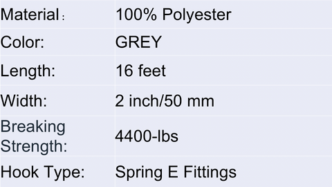 Polyester Grey 2 Inch 4400-Lbs 16 Feet Logistic Strap Fit In E-Track