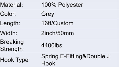 Polyester Grey 2 Inch Logistic Strap 4400Lbs With E-fitting &Double J Hook