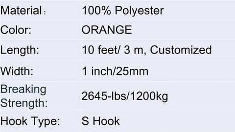 Polyester Orange Heavy Duty 25mm 10 Ft Ratchet Buckle Strap Endless Rope With S Hook