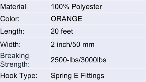 Polyester Orange Spring E Fittings Logistic Strap 2 Inch x 20 ft 3000Lbs