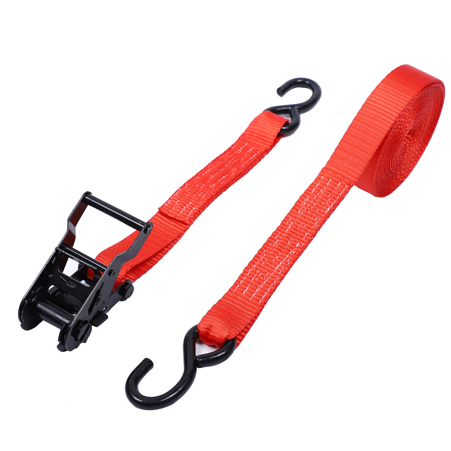 Polyester Red 1.5-inch Cargo Steel Hand Ratchet Straps with S Hook