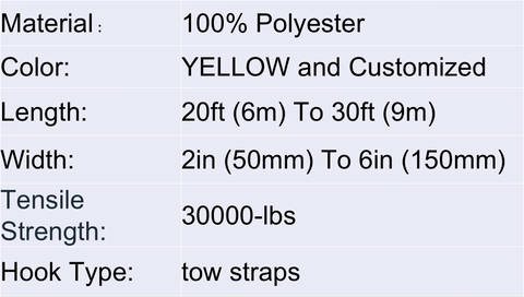 Polyester Yellow Rope Recovery Tow Strap 3 Inch X 20 Feet And Custom Size