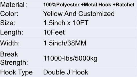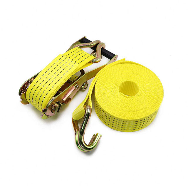 Yellow 1.5 Inch 38mm Polyester Ratchet Strap With Double J Hooks Tie Down Cargo Lashing Strap